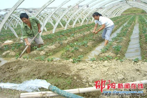 入春以来,刘会华夫妇携儿子刘棋,又在葡萄园地旁,承包良田40亩,用于栽培优质草莓。早在夏季,全家人已育好幼苗。中秋时分的一个月内,正忙于将草莓移栽到大田里。刘氏夫妇介绍,他们采用高垅深沟栽培法,垅内早已下足底肥,以有机肥与复合肥为主,并要覆膜保水保肥,防治病虫害。待气温降至15℃以下时,便要让苗床在大棚内生长。这样,苗长得快而壮,生产出来的草莓果格外甜,个儿特别大。