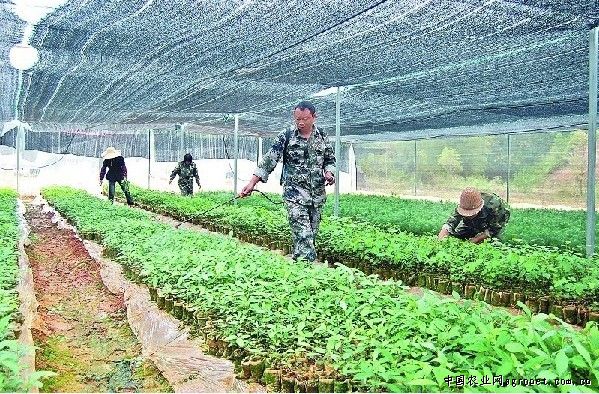 9月22日,将乐县国有林场北京林业大学南方林区(福建三明)综合实践基地的苗圃基地温室大棚里,10多名工人正忙着拌地、剪条、扦插、浇水。该苗圃基地总投资100多万元,占地面积98亩,自去年签约落户将乐后,已出圃70多万株苗木,今年计划育苗60余万株。