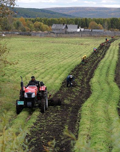9月27日,内蒙古根河市郊区农民在收获马铃薯。入秋以来,内蒙古各地秋季生产陆续展开,全区农业生产呈现丰收态势,秋粮丰收已成定局。新华社记者 张领 摄