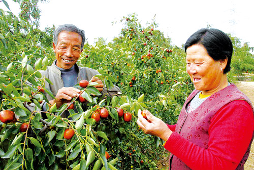 甘肃省白银市平川区水泉镇农民采摘大枣