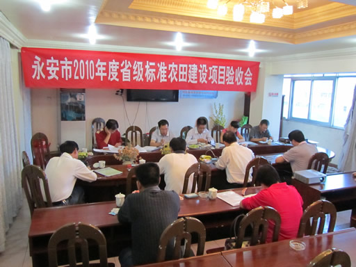 2011年9月26日,由省农业厅基地办组织的项目验收组对永安市2010年度省级标准农田建设项目进行验收。通过现场检查、实地丈量、查看内业资料、听取工作汇报后,验收组充分肯定了永安的工作,认为永安市2010年度青水乡汀海片的省级标准农田建设项目规划设计科学,布局合理,工程质量、施工工艺较好,工程数量足,文档材料齐全,县级报帐财务规范,项目建成后较好地改善了项目区农田基础设施条件,结合实施科技推广项目,促进了当地农业增效、农民增收。验收组经过综合评价,同意通过省级验收,该项目被评为优秀。