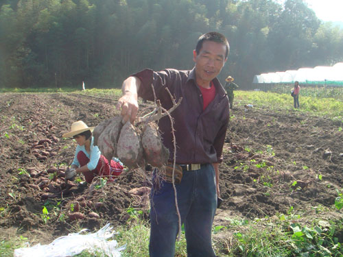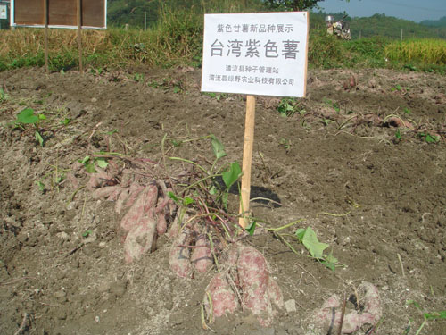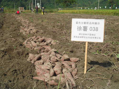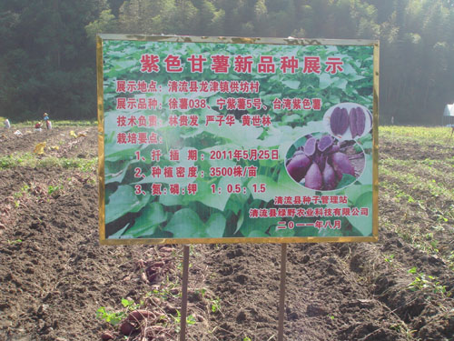 为满足人们对紫色鲜薯的食用需求,为该县甘薯加工企业原料基地建设提供品种支持,2011年,清流县农业局引进了徐薯038、宁紫薯5号、台湾紫色三个紫色甘薯新品种在龙津镇高板清流县绿野农业科技有限公司基地由科技示范户进行展示,经实地测产验收,亩产分别为2238公斤、1911.2公斤和1757公斤,甘薯加工企业田间收购价每公斤1.6元,比同期普通甘薯每公斤高0.7元,亩产值达3580元、30557.9元和2811元,获得较好的收益。其中徐薯038、台湾紫色薯两个品种薯形好、紫色深、商品薯率高,可以在该县进一步扩大示范,促进该县甘薯产业的发展。