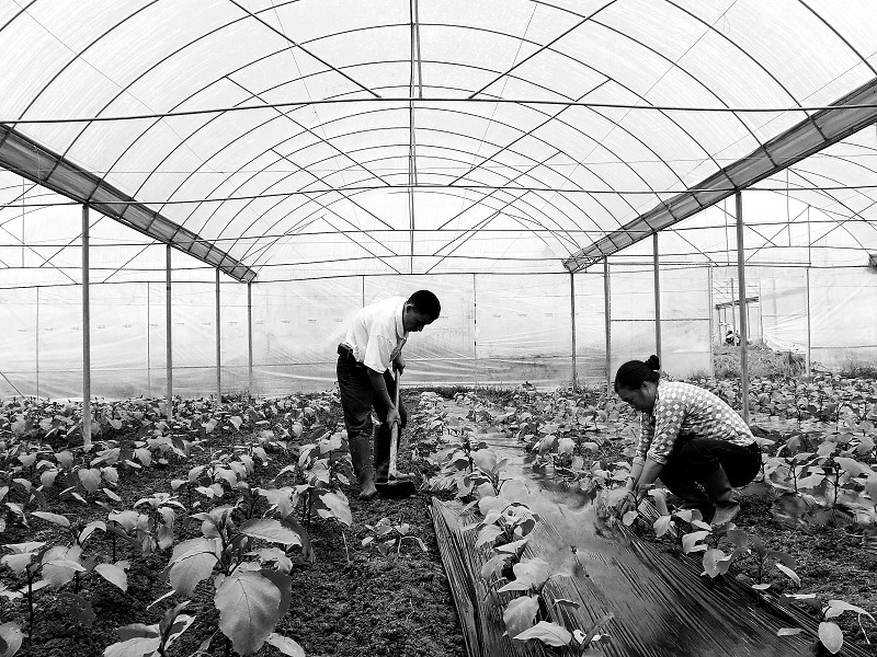 10月11日,在建宁县溪口大棚蔬菜基地,菜农们正忙着给蔬菜套膜。这个基地以提供无公害、反季节蔬菜为主,年可生产新鲜蔬菜4000多吨,亩产值可达3万余元,目前基地已建设高标准连栋大棚21个,引进帝王菜、茄子、黄瓜、丝瓜等十几个优良品种。