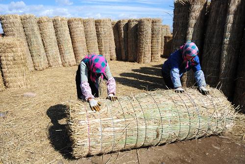 甘肃靖远县积极引导农民利用废弃的稻草开发新型产业。2010年,全县4.2万亩水稻秸秆大部分被编成草帘,为当地农民增收近2000万元。新华社记者 聂建江 摄