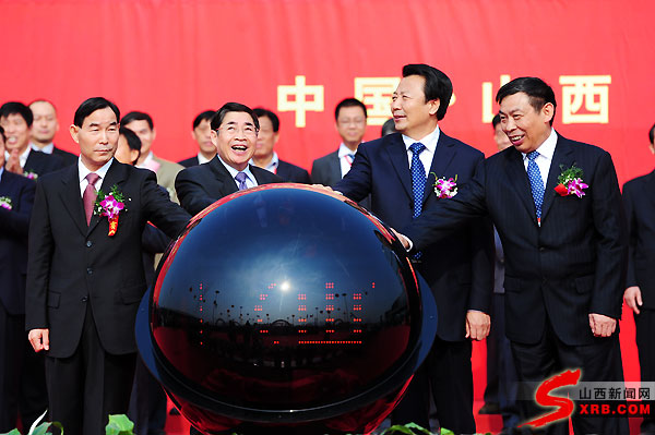 袁纯清、王君、朱保成、戴公兴共同按下第二届中国(山西)特色农产品交易博览会启动按钮