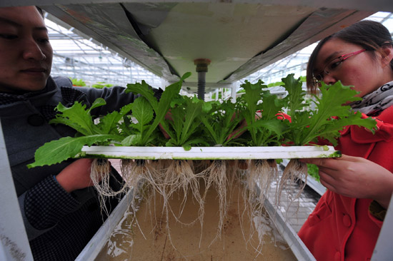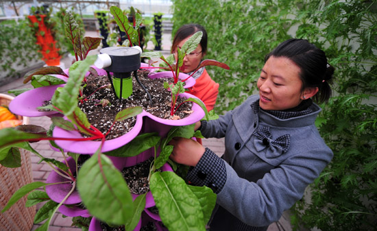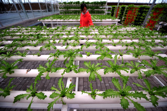 地处河西走廊的甘肃省高台县以高标准的现代农业科技示范园为依托,整合专业技术力量,加大项目支持力度,集中实验、示范农作物新品种、新技术,加快农业科技成果的转化应用,集中开展蔬菜工厂化育苗、高原夏菜、节水农业和园艺作物制种等试验示范,辐射带动周边1万亩耕地从传统生产方式向规模化发展,标准化生产、产业化经营发展。 新华社记者张锰摄