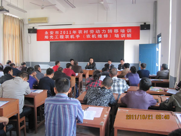 为搞好这一期培训,永安市农机中心做了精心准备,与福建国防技校永安分校合作,利用其现有的教学设备和齐全完备的钳工车间,为培训学员提供学习实践操作的平台。农机中心向培训学员讲解有关农机维修的法律法规、职业素质与职业道德知识;国防技校向培训学员讲授了典型农业机械构造原理、农业机械维护保养技术、农业机械故障的诊断与排除等实用知识。老师讲的详细,学员听的专心并认真做好笔记。