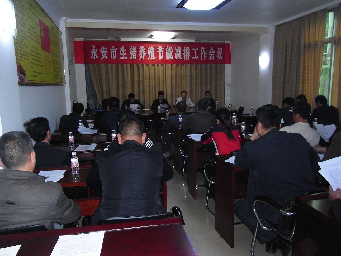 2011年11月10日,永安市畜牧兽医水产局举办了永安市生猪养殖节能减排工作会议。全市年出栏一千头以上生猪的26家生猪养殖经营企业负责人、永安市畜牧兽医水产局和永安市环保局相关部门人员共计30多人参加会议。
