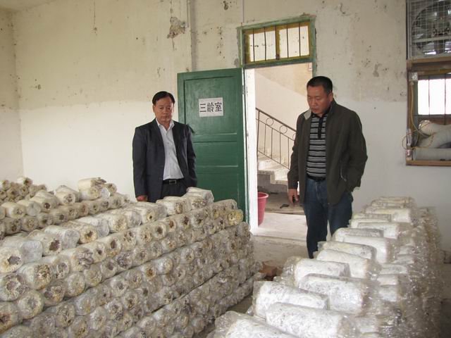 11月14日,象州县农业局韦国嵩局长率项目办有关人员到该县罗秀镇良种示范场检查桑枝食用菌生产。