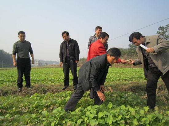11月15日,宁乡县农业局党委书记黄春光、副局长陈德新、农技中心副主任肖军带领县粮油站、植保站的技术人员到沙田乡万亩油菜示范片进行实地考察和技术指导。