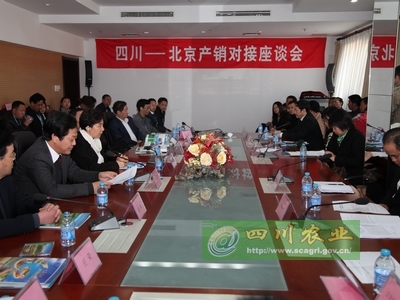 在“2011四川暨川藏高原优质农产品绿色食品北京展销周”期间,省农业厅积极为四川农产品生产企业与北京的中外商家牵线搭桥,组织召开了“四川北京产销对接座谈会”。来自我省农业部门、生产企业、北京商家以及北京市商委、农委、农业局有关负责同志共100多人参加了座谈会。座谈会由省绿色食品发展中心主任周南华主持,省农业厅副厅长祝春秀作重要讲话,阿坝州人大副主任罗塔,中共甘孜州州委常委、农工委主任杨凯分别介绍了阿坝、甘孜特色农业资源情况。北京市商委、农委负责同志为四川企业开拓北京市场提出了宝贵意见。