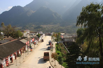 近年来,两当县云屏乡党委、政府紧紧抓住灾后重建机遇,通过规划、拆迁、建设,把街道由原来3.5米拓宽改造成21米,并安装仿汉白玉护栏176米、太阳能路灯20盏,铺设青石板景观路840平方米、透水砖景观路680平方米,绿化1448平方米,栽植紫荆、樱花等绿化树217株,一个独具特色的旅游小城镇已展现在人们的面前,图为新建成的街道外景。