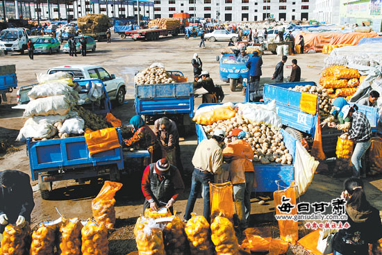 收获时节,定西市各农贸市场随处可见马铃薯交易的红火场景。