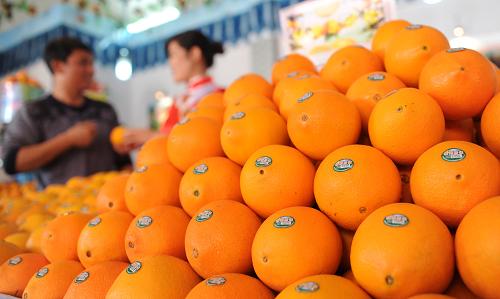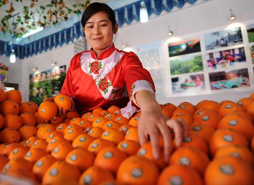 11月29日,在第三届中国赣州国际脐橙节展销会上,一名工作人员在摆放脐橙。当日,由农业部和江西省人民政府共同主办的第三届中国赣州国际脐橙节在江西赣州开幕。据了解,经过30多年的发展,江西赣州脐橙种植面积已达181万亩,预计2011年总产量将达140万吨,成为脐橙种植面积世界第一、年产量世界第三、全国最大的脐橙主产区,被誉为“世界橙乡”。新华社记者 周科 摄