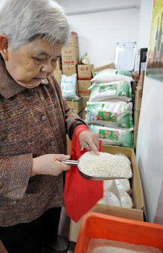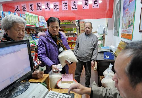 12月10日,为了稳定福州市大米价格,福建省福州市粮食局开始在福州市区十几家国有粮食企业“禾盛粮油店”全面正式低价销售1900吨晚籼米,首批投放126吨,惠民大米每500克售价1.75元。新华社记者 林善传 摄