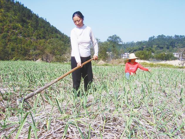 近日,吉水县螺田镇大丘湾村农民在田间管理大蒜。入冬以来,该镇充分利用山地资源优势,通过财政奖补扶持、基地示范、大户带动等措施,大力推进高产优质大蒜种植。目前,全镇已种植大蒜7600余亩。