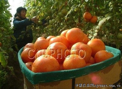 山西运城市新绛县泽掌镇泽掌村千亩蔬菜基地菜农卫水娥在抓紧采摘丰收的西红柿。