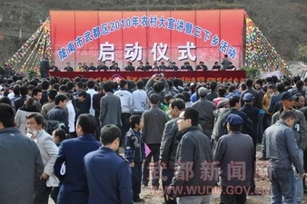 11月21号,武都区在佛崖乡叶坝村隆重举行了全区2010年农村大宣讲暨“三下乡活动”启动仪式,这标志着武都区以讲政策思路、道德法规、信息技术为主要内容的农村大宣讲和送科技、卫生、文化为主的三下乡活动正式启动。
