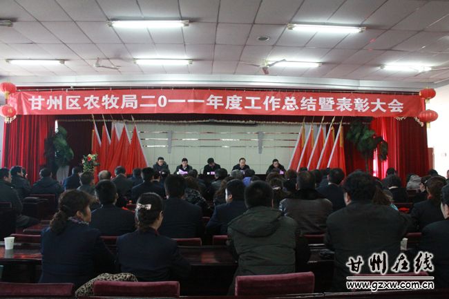 2011年12月31日下午,甘州区农牧局隆重召开2011年度工作总结暨表彰大会,局长马河、党委书记许福志、副局长韩守仁、局系统全体干部职工共130多人参加了会议。