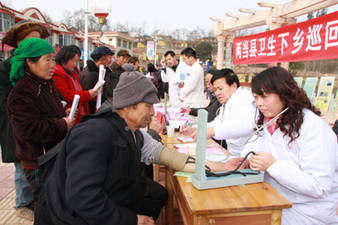 近日,两当县开展文化科技卫生“三下乡”活动,深受广大群众的欢迎,图为两当县卫生部门组织医疗人员,深入乡村为群众进行义诊开展医疗服务的场面。