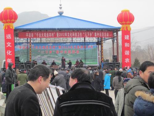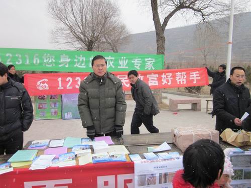 为了让广大农民群众及时了解和使用12316“三农”服务热线,尽快架起农民与专家、农民与市场、农民与政府互动沟通的直通桥,1月6日,平凉市农牧局积极利用全市“千台大戏送农村”暨文化科技卫生“三下乡”示范活动,集中开展了12316“三农”服务热线宣传推介。