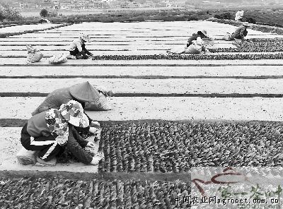 福安是全国民间最大的茶树良种繁育基地,福安市委、市政府大力扶持茶业结构调整,在甘棠、上白石、社口等地建立良种育苗基地,带动群众发展高香型金观音、黄观音等茶叶品种。图为溪柄楼下村村民正在新开辟的育苗田里扦插梅占、龙井等茶苗。