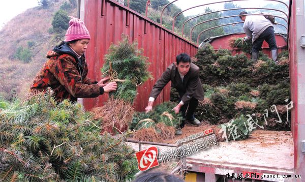 1月10日,通道双江镇红香村村民将20万株杉树苗装车运往贵州。该村是通道的苗木基地,村里70%以上的土地种上了树苗。小小树苗成为山村农民脱贫致富的大产业,每年向广西、云南、贵州、福建等地销售苗木5000余万株,实现收入余万元。