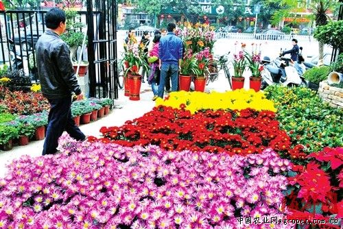 花卉场内怒放的鲜花,让人提前感觉到了春节的热闹