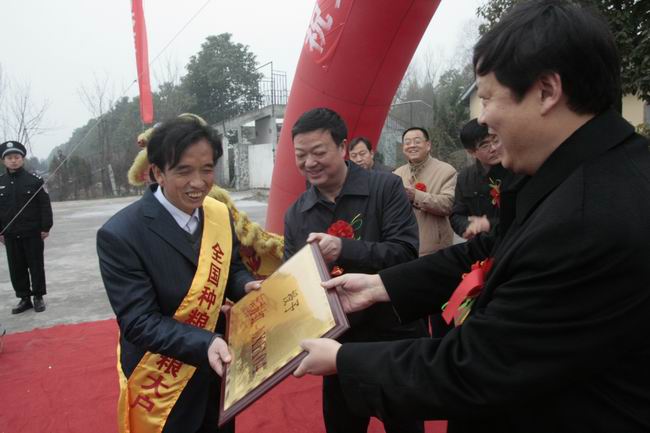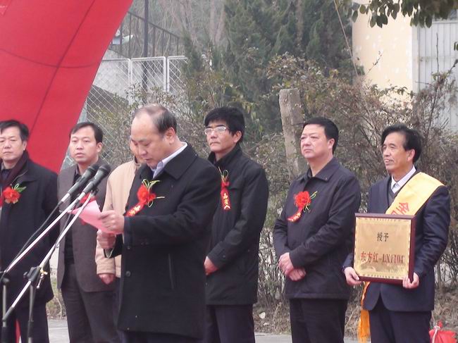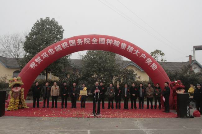 在国务院最近召开的全国粮食生产表彰奖励大会上,汉中市汉台区宗营镇韩塘村三组农民冯忠诚同志被评为2011年全国种粮售粮大户,并获得价值26万元的东方红LX1104新型拖拉机一台。1月13日,汉台区隆重举行了颁送奖品车仪式,仪式由区委副书记李耕同志主持,市委、市政府、区委、区人大、区政府、区政协相关领导出席了仪式,市委副书记邢可利同志作了重要讲话,市委常委、政法委书记张雁毅同志和市委常委、汉台区委书记杨记明同志共同向冯忠诚同志颁送了奖品车。