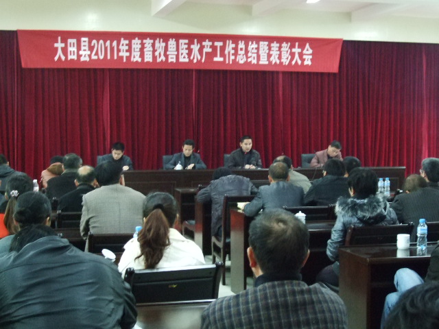 1月16上午,大田县畜牧兽医水产局召开2011年畜牧水产工作总结暨表彰大会,传达全市农业工作会议精神,部署2012年工作。全县畜牧兽医畜牧水产系统干部职工参会。