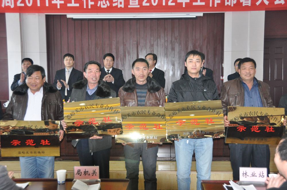 会上,为嘉峪关市绿营花木合作社等12家农民专业合作社市级示范社进行了授牌,通报了2011年目标责任书的完成情况和干部考核结果,表彰了先进单位和优秀职工,并与局属站所签订了2012年目标责任书。