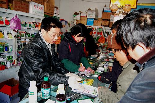 1月19日,玉门农民在农资市场选购农资产品。新华社发(万宗平 摄)