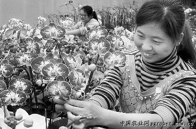 19日,位于漳浦台湾农民创业园的漳州钜宝公司大棚内,员工们正在打理即将外运的蝴蝶兰。近年来,漳浦县不断发展壮大花卉产业,已形成百里花卉走廊、榕树出口中心和绿化苗木种植等特色基地。