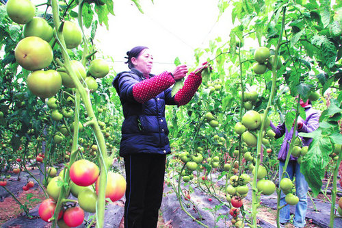 正月初四,建宁县溪口镇七里坑大棚蔬菜基地,菜农正在打理西红柿。春节长假未过,歇不住的建宁农民,下田间,上山头,为新一年的收成而忙碌开了。