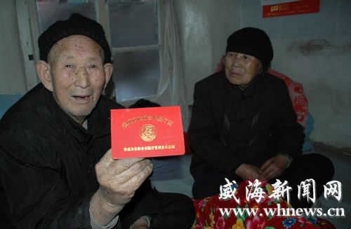 常容进老人正在展示他的农村合作医疗证。(记者 刘新刚 摄)
