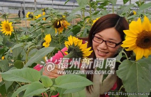 春节长假期间,闽侯龙台山接待游客3000多人。游客除了在龙台山采摘时令水果外,还能参观由省农科院提供的大棚向日葵新品种。这种分茬种植的大棚向日葵,365天都有花开、结果,不受季节影响。