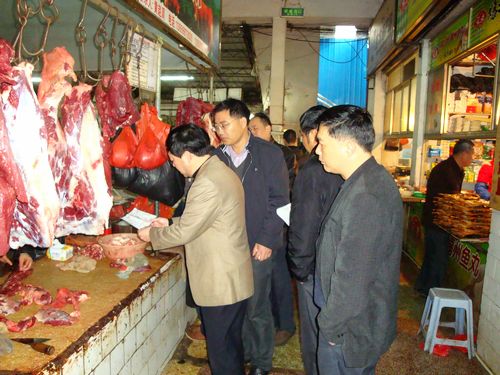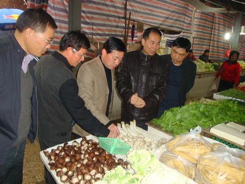 曾荣儿副局长带领市农产品质量安全监管科、动物卫生监督所,两区动物卫生监督所、农业行政执法大队、农产品检测中心等有关部门人员28人次,分别对三元蔬菜农副产品交易市场、三元区红杏农贸市场、三明综合市场、三明市冷冻厂、三明市生猪屠宰场、福建安益冷冻有限公司等单位的猪肉、牛肉、羊肉、禽肉、冷冻肉制品等蓄禽产品和蔬菜、蘑菇等种植业产品进行检查。重点查看检疫证明出示、检疫标识贴挂、索证索票和台帐档案情况。