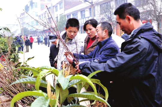 摘要:湖南洞口县高沙镇农民在苗木市场选购树苗
