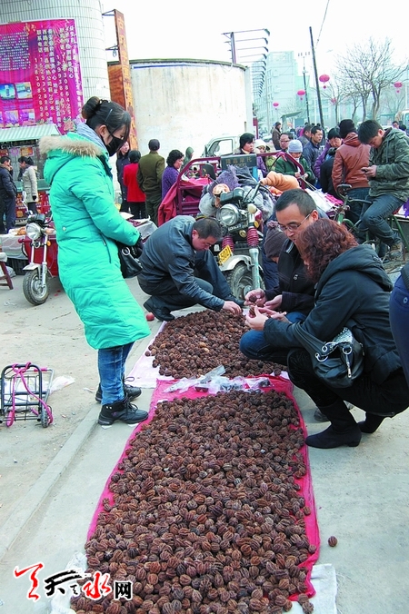 昨日,记者在我市花鸟市场门口就发现不少叫卖山核桃的摊贩,在满眼的山核桃中,有的是还没有经过加工处理的原始状,有的则是已经将山核桃制作成型的工艺品。
