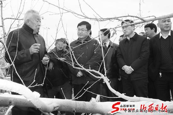 2月8日,吉县东城乡雷家庄村果园里,果树专家马恩教授正在指导果农如何进行果树管理,虽然天气寒冷,但是前来听课的果农听得专注,心中充满果树增产增收的渴望。
