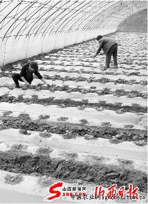 2月15日,忻州市忻府区部落村温室大棚内的青苗已绿油油一片,两名农民正在为种植的甜瓜查苗补缺。为落实中央一号文件精神,部落村采取资金扶持等措施,加大科技投入和创新,推动兴农战略,投资1400万元,建起了面积达360余亩、拥有温室大棚117个的农业科技示范园区,为农民“酿造”甜蜜幸福生活。