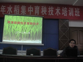 2月21日上午,省集中育秧驻双峰指导员、推广总站体系科科长周桂华为双峰县的农技干部、乡镇农技站长和部分育秧点农户、种粮大户代表等200多人进行了水稻集中育秧的旱育保姆包衣育秧技术培训,农业局高级农艺师宋仁德在培训会上为参训人员授课。