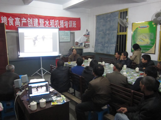 为做好水稻机械化育插秧技术示范推广工作,3月5日晚上,冒着小雨,永安市农机中心利用休息时间,到水稻育机插秧示范点大湖镇益溪村举办粮食高产机插秧培训班,该村机插秧示范户20多人参加机插培训。