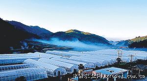 建瓯市迪口镇中田村里,现代化钢管大棚整齐排列(摄于3月10日)。今年,中田村引进景谷天农业科技有限公司,在钢管大棚里采用滴灌方式种植无公害反季节西红柿、青椒等蔬菜。该项目总投资600万余元,每亩创产值3万余元,本月底开始种植生产。