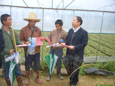 春耕期间,大田县组织200多名农技专家成立了“科技雷锋”助农服务队,深入到全县各乡(镇)村,活跃在田间地头,帮助村民搞大棚基地建设、科技培训、弱势家庭支农活动,并发放“五新技术”宣传单。