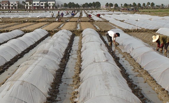 3月24日,连续低温阴雨了近1个多月,华容县终于迎来了久违的阳光,天气晴好,气温回升,正是育秧播种的黄金时期。该县广大群众在县、乡、村各级领导的带领下,纷纷来到田间地头,全力投入早稻集中育秧播种。广袤的田野,一个个集中育秧点上,流动着群众忙碌的身影,稻种、软盘、竹拱、地膜等物质,一会儿就把田间装扮得面貌一新,大闹春耕生产的气息扑面而来。