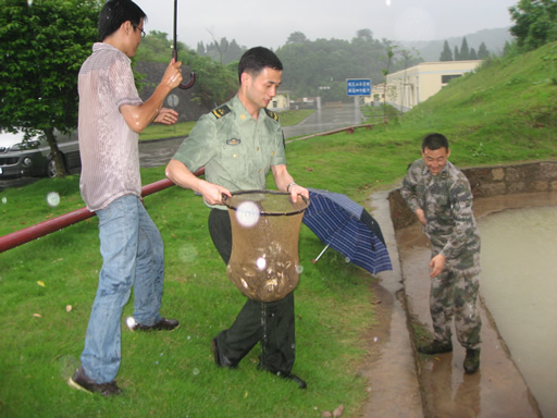 5月10日,永安市农业局工作人员冒雨分别将6000多尾优质鱼苗送到驻军96167部队和永浆部队,并派专业技术人员进行现场养殖技术指导。