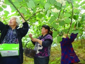 5月10日,永顺县松柏镇大桥村村民正在抢抓天气,给猕猴桃配花。松柏镇已发展猕猴桃2万余亩,占全县总面积的五分之二以上。今年的花开得比往年好,为达到增产增收,配花时节,种植户请来亲朋好友帮忙配花。