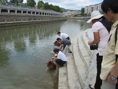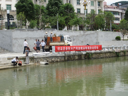 为加强明溪县溪河水域生态环境和水生生物资源保护,促进明溪县生态文明建设,5月31日上午,由明溪县畜牧水产局举办,明溪县水技推广站具体实施,主题为“增殖溪河渔业资源,促进生态文明建设”的2012年明溪县水生生物资源增殖放流活动启动仪式在雪峰镇城西村河滨路举行。
