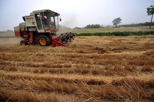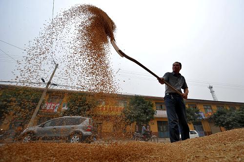 6月5日,山西省运城市盐湖区上王乡一位农民对收割的小麦进行扬场。目前,山西各地正在进行小麦机收工作,1.1万台小麦联合收割机忙碌在田间地头,截至6月4日,已收获小麦面积超过25万亩。山西省农业厅5日通报,初步预计,山西省1000多万亩冬小麦,总产可比上年增加6%以上,单产可望突破历史最高水平。